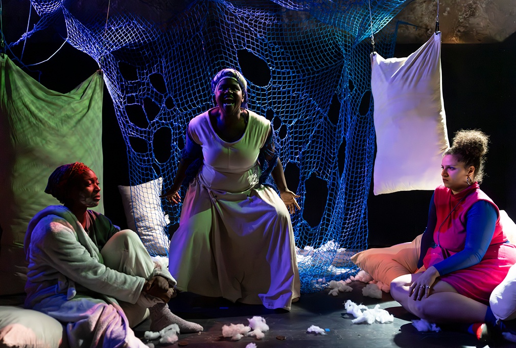 Written by Jasmine Lee-Jones Direction Anne Simon assisted by Lea Lieser Performance Céline Camara, Marie-Christiane Nishimwe, Nora Zrika Costumes and set design Lynn Kelders Music Anthime Miller Production Théâtre du Centaure Coproduction Kinneksbond, Centre Culturel Mamer, CAPE - Centre des Arts Pluriels Ettelbruck